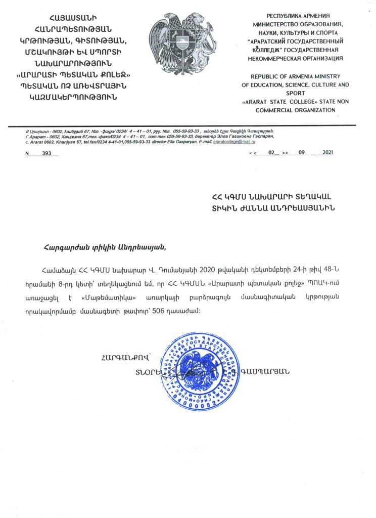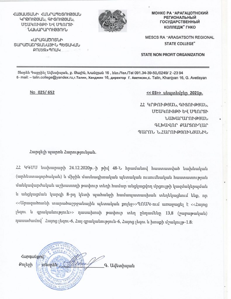 Министерство образования объявляет тендер «Ереванское государственное профессионально-техническое училище декоративно-прикладного искусства» СНКО «Первый ...